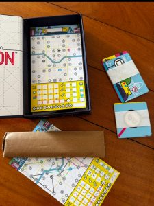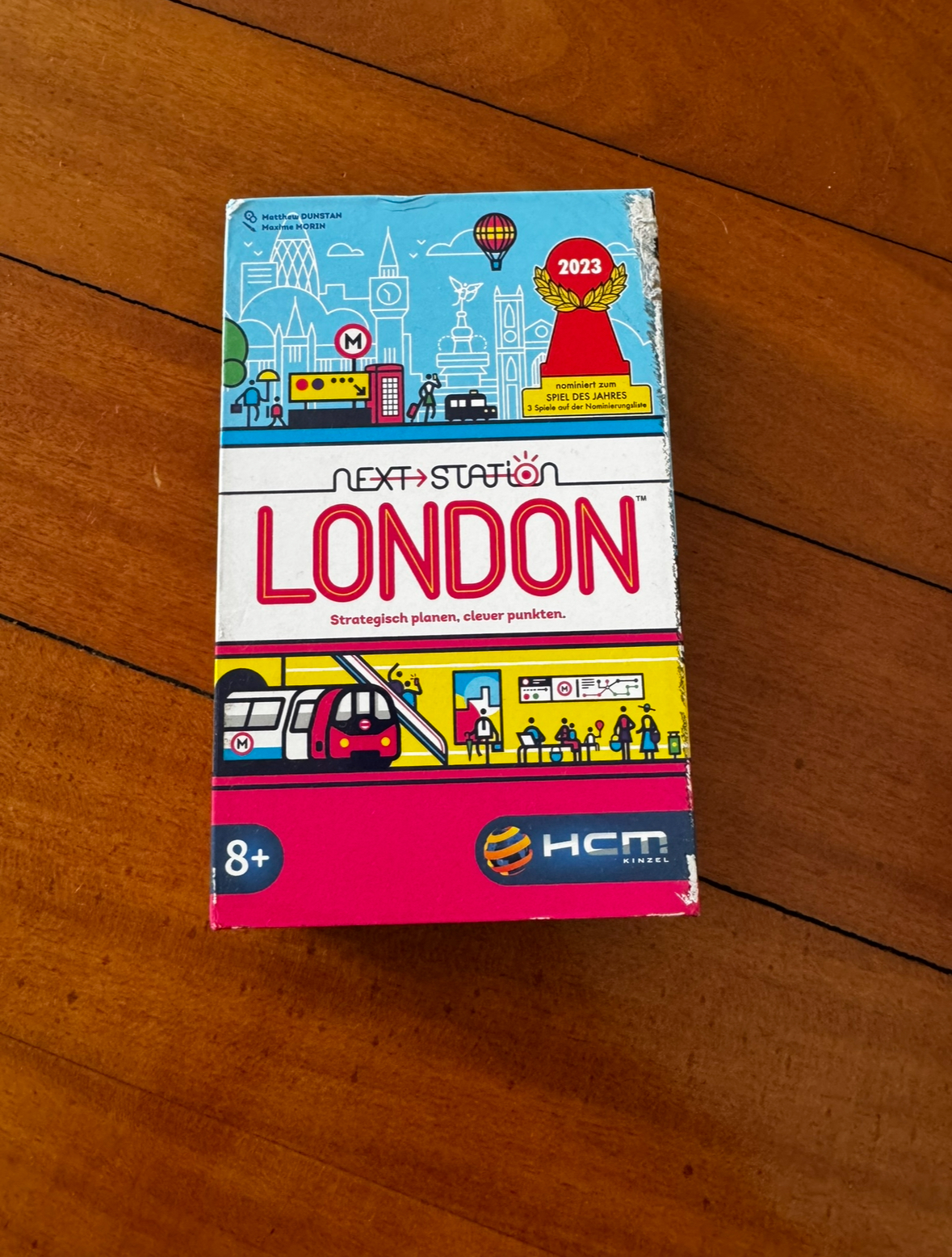 Next Station: London is a flip-and-write game where players take on the role of urban planners redesigning London’s underground railway network. Each turn, players draw cards that indicate which station type they must connect next, extending colorful metro lines across their personal maps.